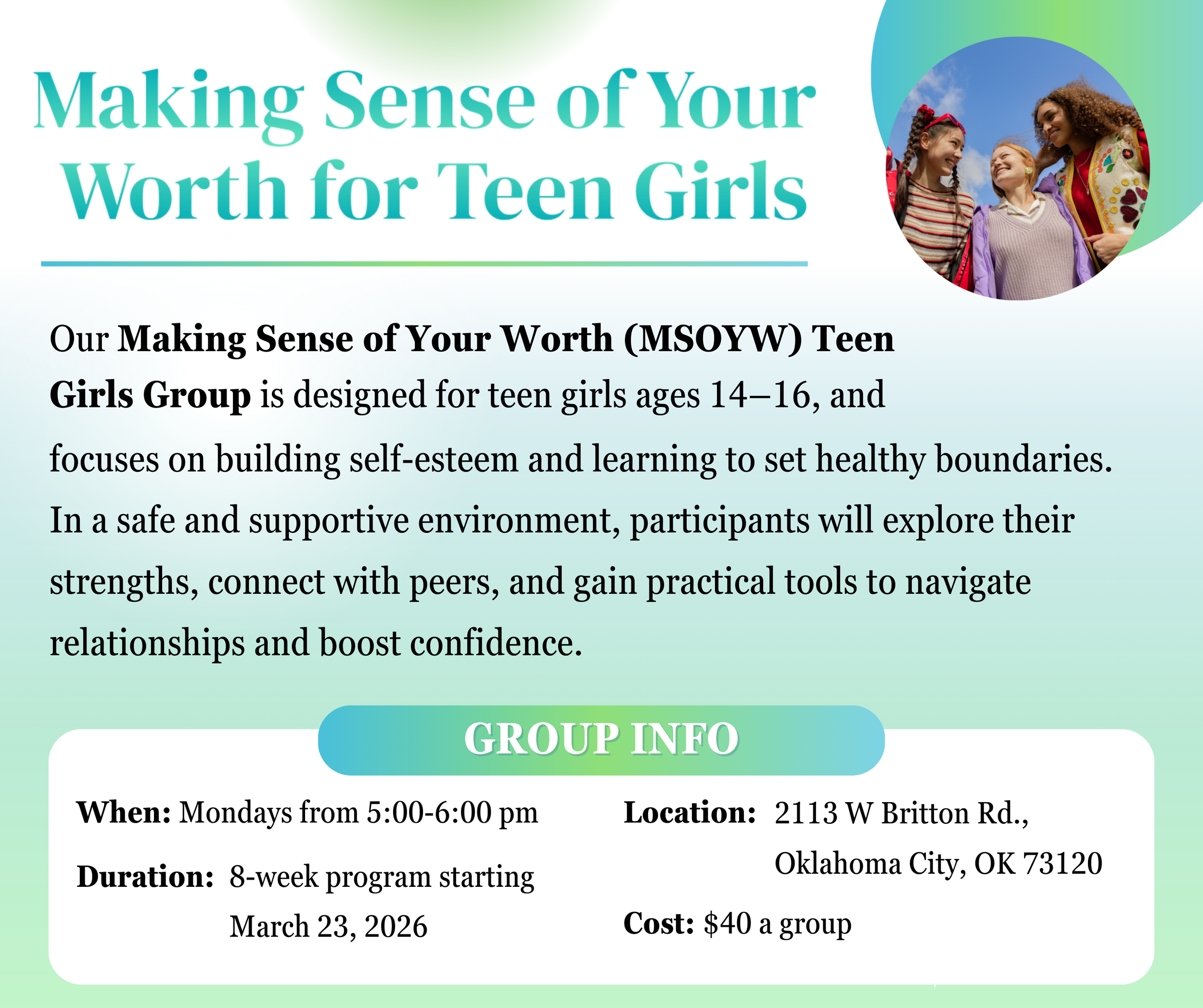 A Chance to Change is offering an 8‑week Making Sense of Your Worth (MSOYW) Teen Girls Group for ages 14–16. This program is designed to help teens strengthen self‑esteem, understand their self‑worth, and develop healthy emotional boundaries.